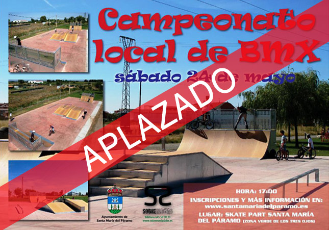 El campeonato de BMX programado para hoy sábado ha sido aplazado sin fecha confirma por falta de participantes, en las redes sociales algunas personas han apuntado a la dejadez de los jóvenes para los que se realizó esta instalación de no querer colaborar, mientras que otras personas han comentado que la fecha no es buena dado que estamos cerca del final del curso, y que muchos de los jóvenes que utilizan esta instalación participan también en otros deportes que tienen citas importantes hoy sábado, además de que el campeonato se ha programado como un campeonato local.