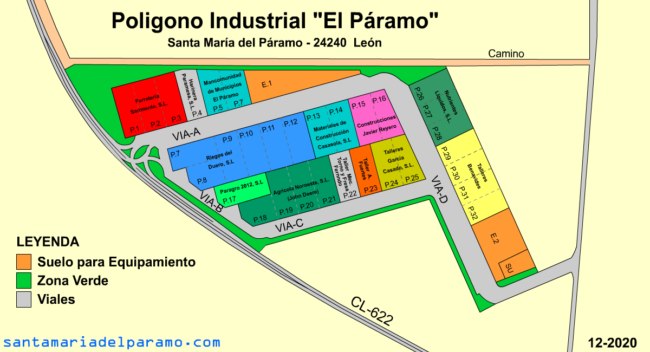 El Polígono Industrial de Santa María del Páramo está situado entre las carreteras CL-622, León-La Bañeza y la Carretera LE-6523 de Santa María del Páramo a Bercianos del Páramo, en el polígono catastral n.º 102, en las parcelas n.º 30, 31, 34, 35, 10030, 20030 de propiedad municipal.